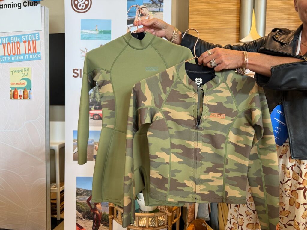 Sisstr has several cute swimsuits that tie back to matching rash guards, surf suits and wet suits that are unique in the market. So instead of a black wetsuit, girls can wear brown polka dots, fashion camo, and other styles, said Sisstr VP of Sales and Marketing Carrie Piccolini.